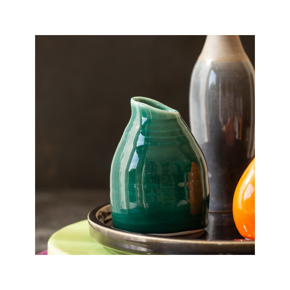 PRO temno zelena Botz glazura je pripravljena tekoča sijaj glazura primerna za lončevino in kamenino. Glazura je primerna za nanašanje s čopičem. Botz glazure uporabljajo začetniki, šole in profesionalni keramiki. Barva se glede na različne temperature žganja nekoliko spreminja. Glazura na sliki je pečena na 1150°C.